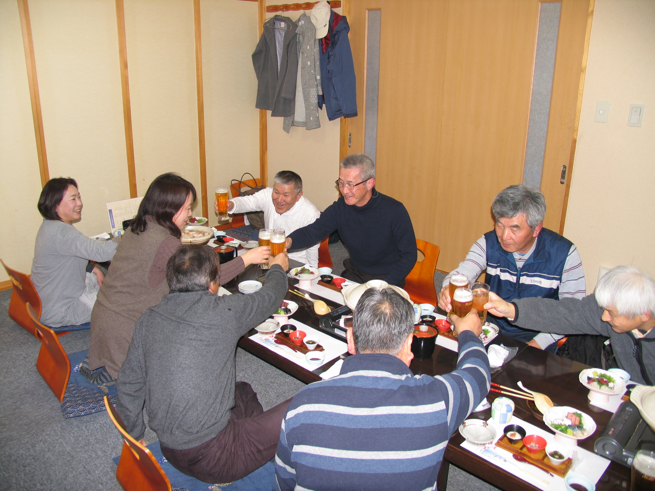 懇親会は、大先輩の佐藤祥樹さんの乾杯の音頭でスタート。