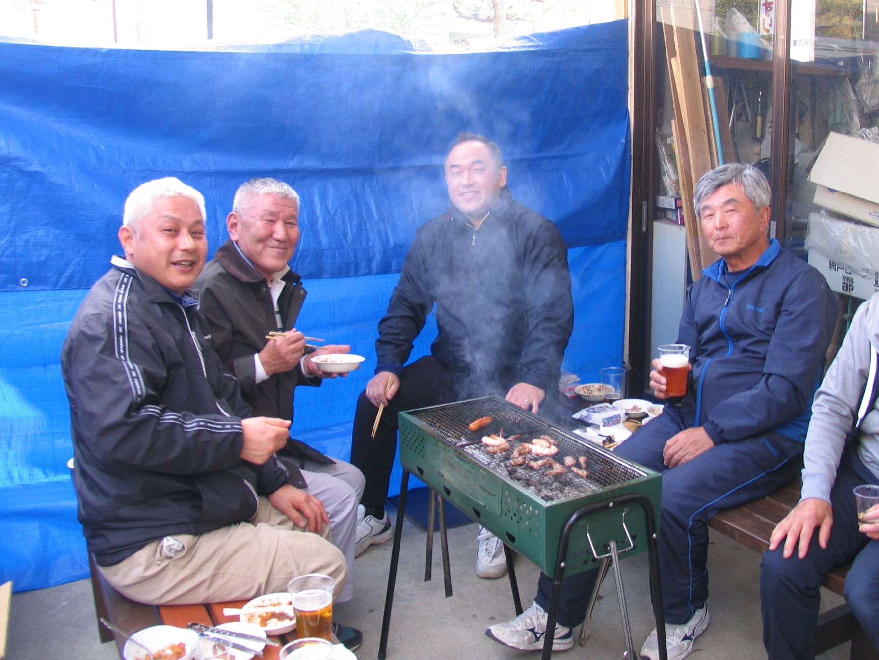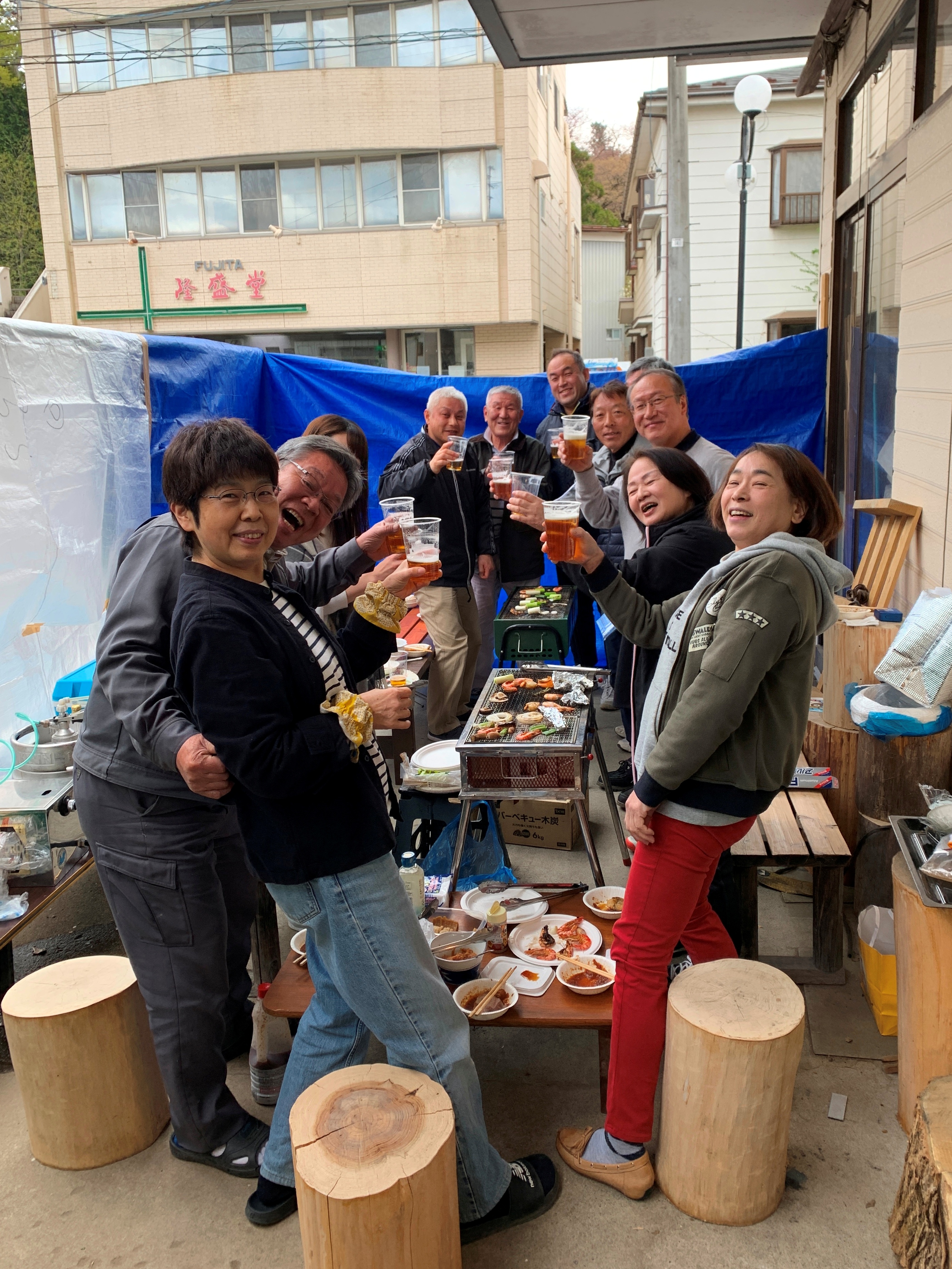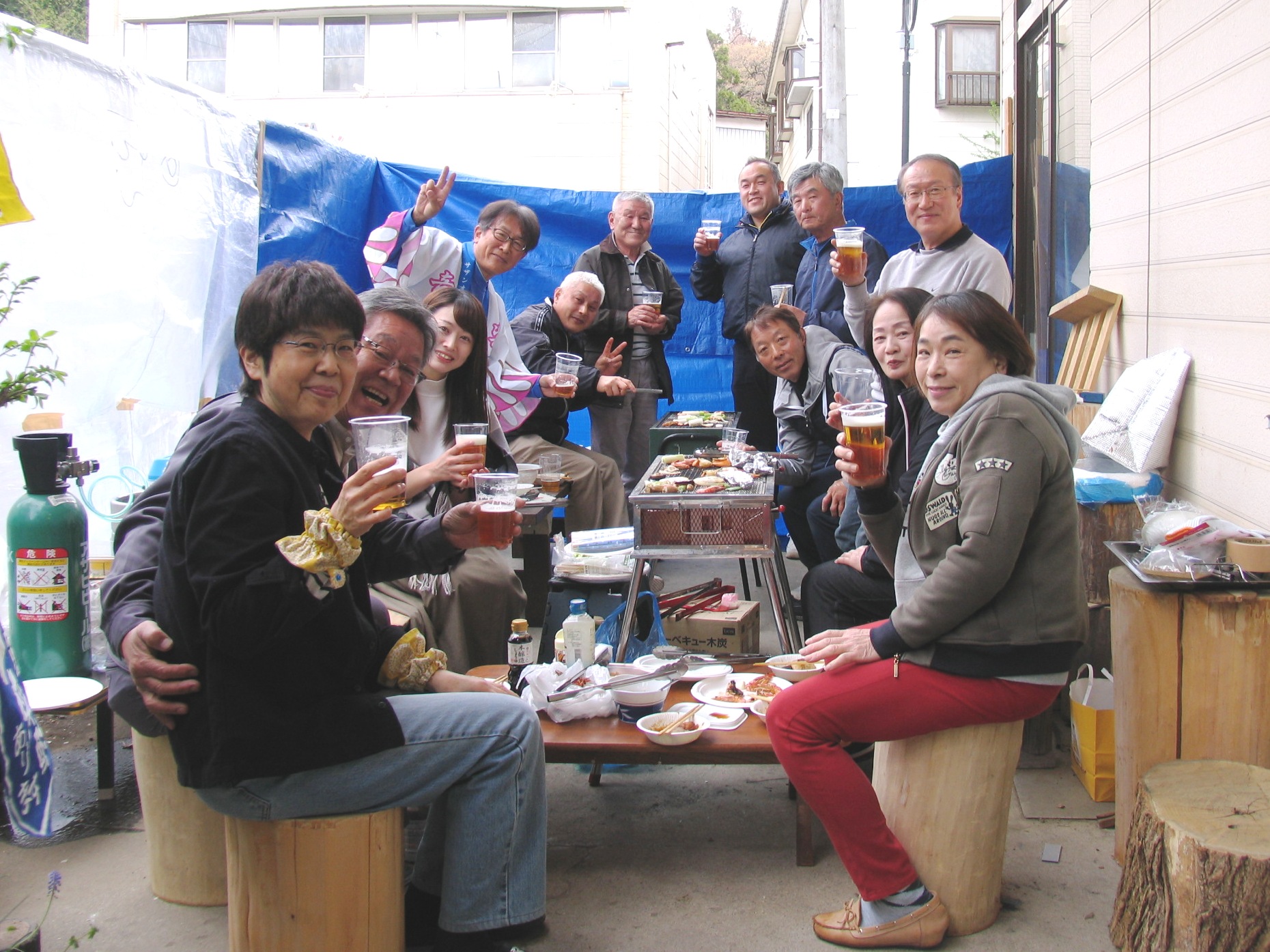 14時から火起こしが始まり、なんちゃって乾杯でSTART!