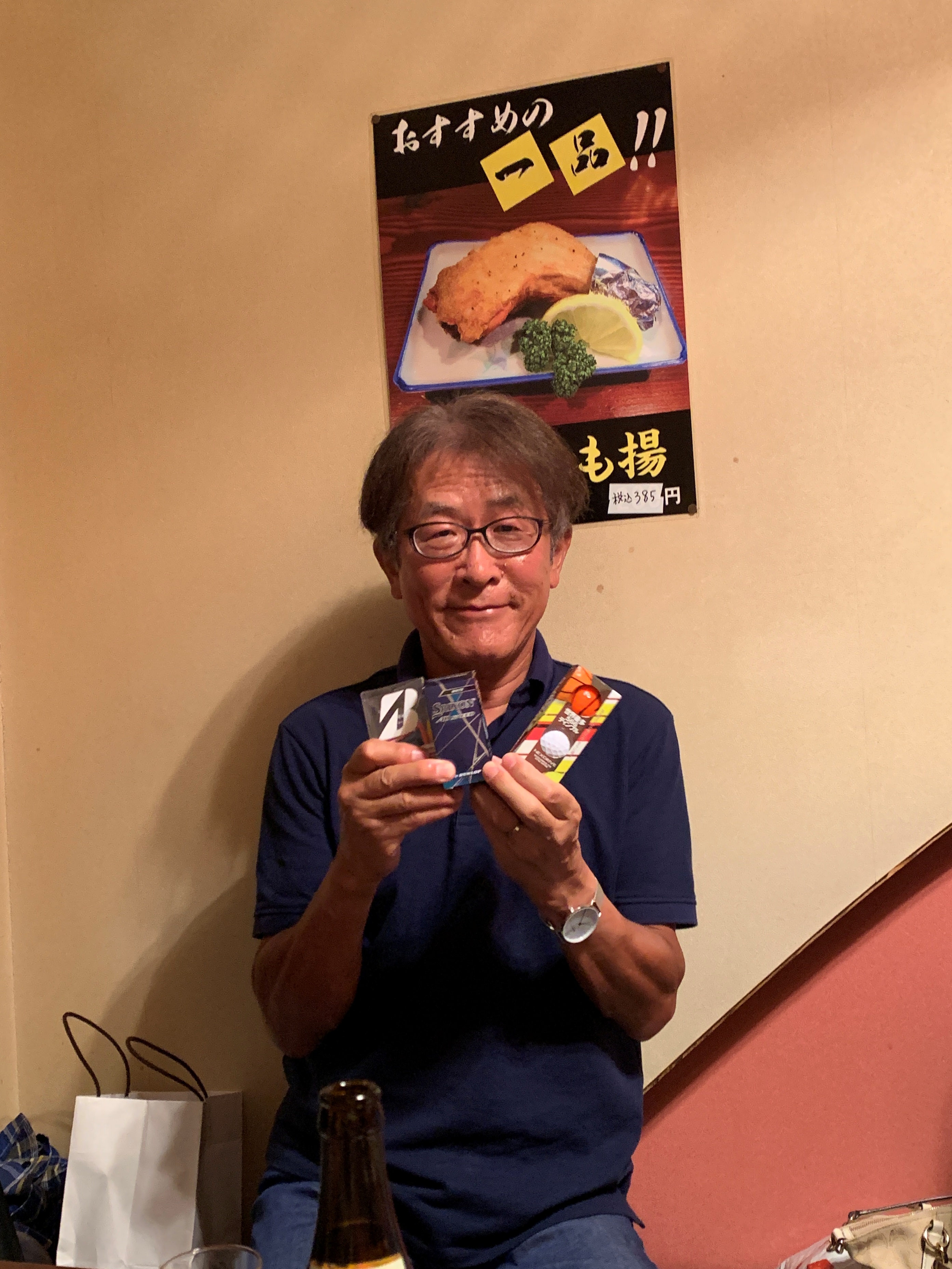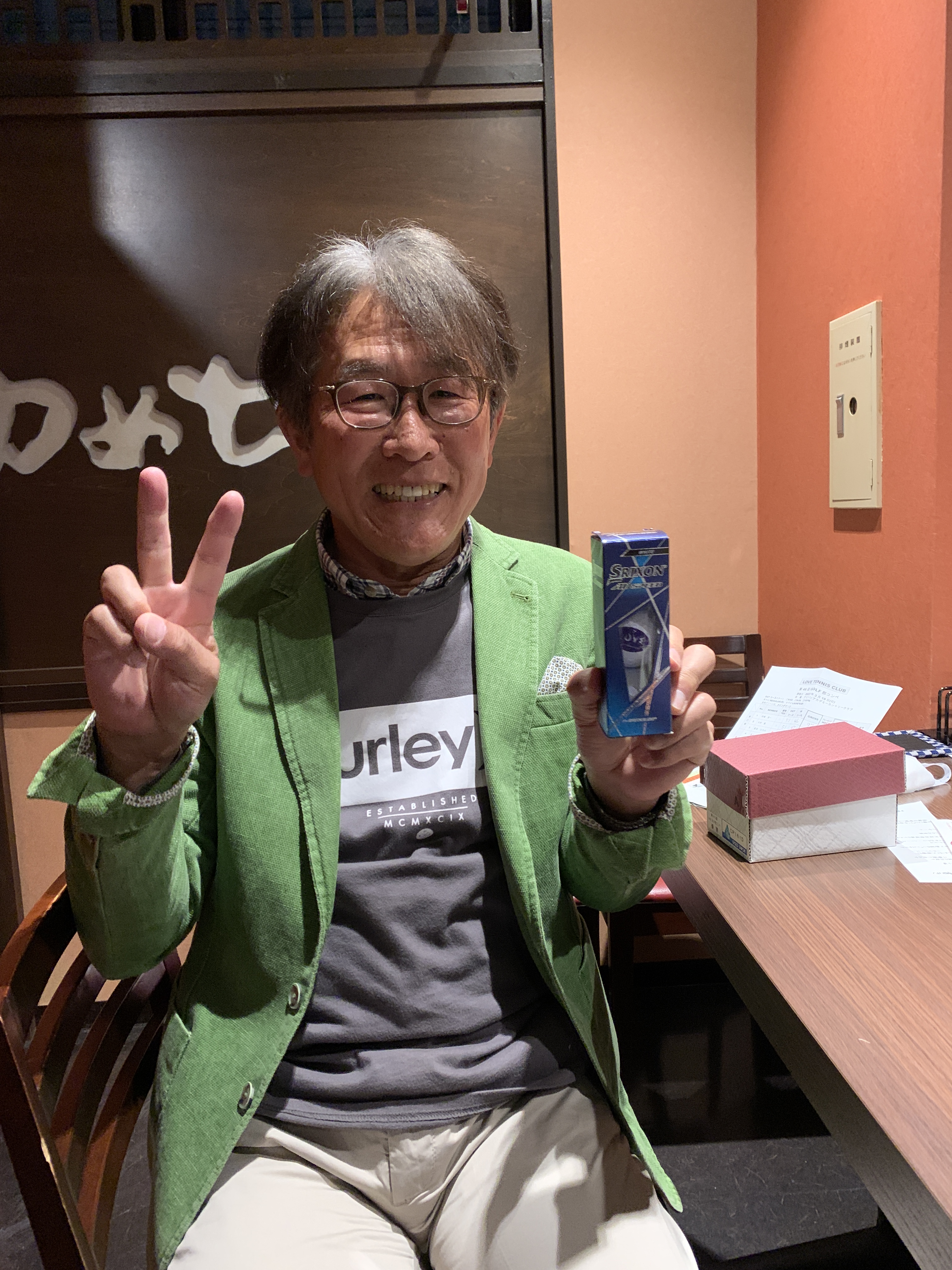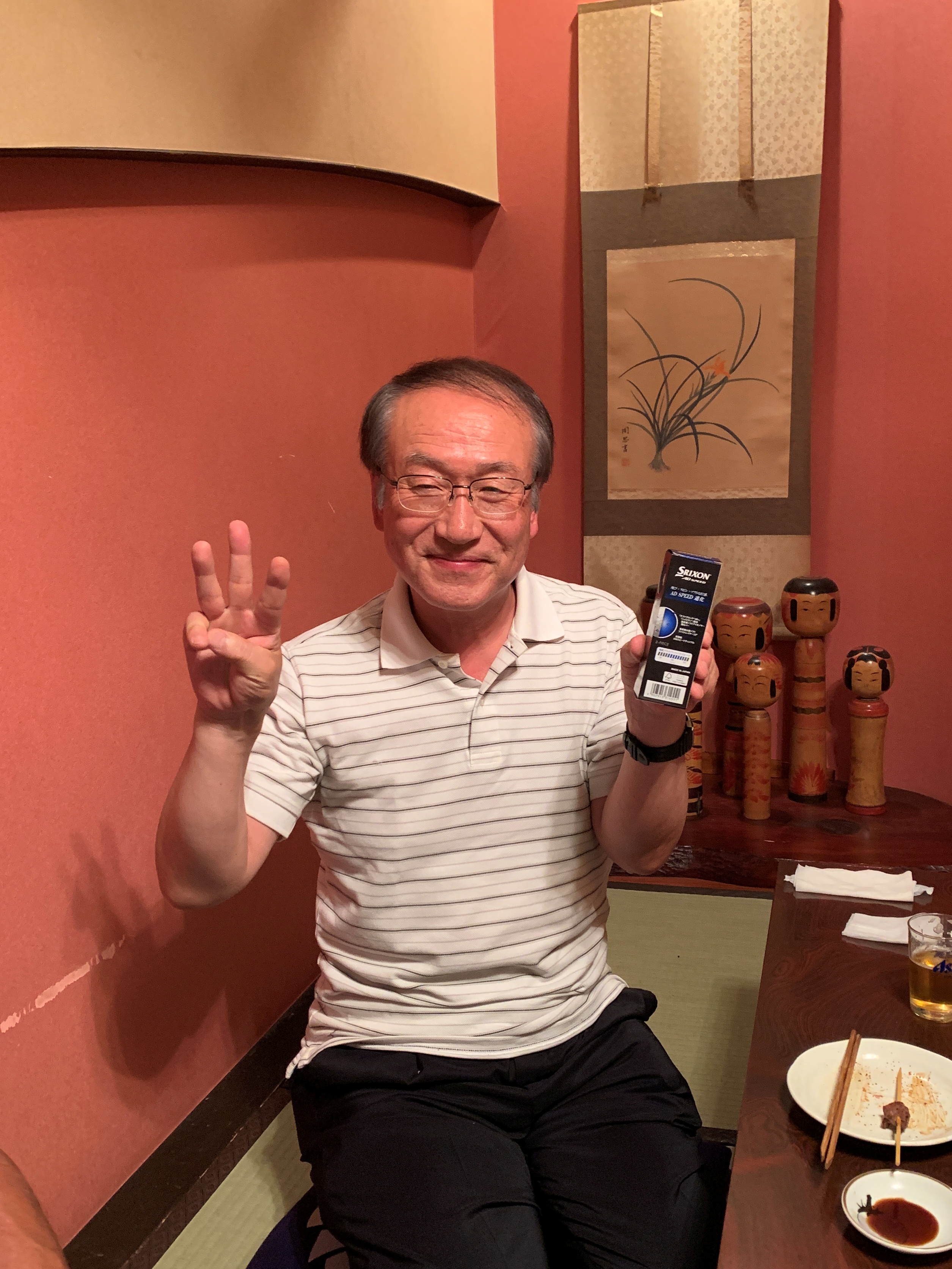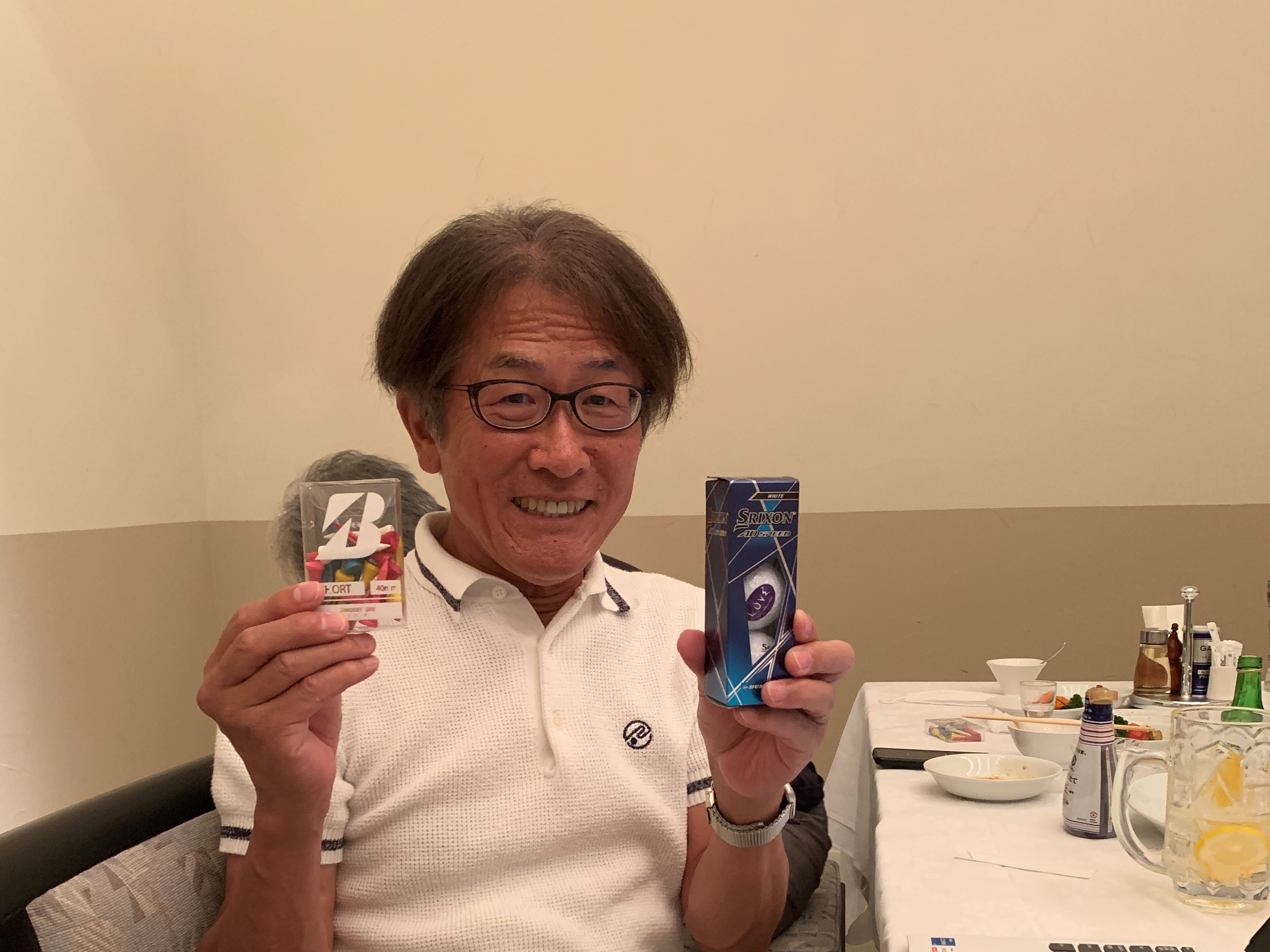 今回のアトラクションも、懇親会の席上であみだくじで隠しホールの10ホールを決めるペリア方式で「LOVEペリア賞」とし、今回は田嶋さんがGETしました。