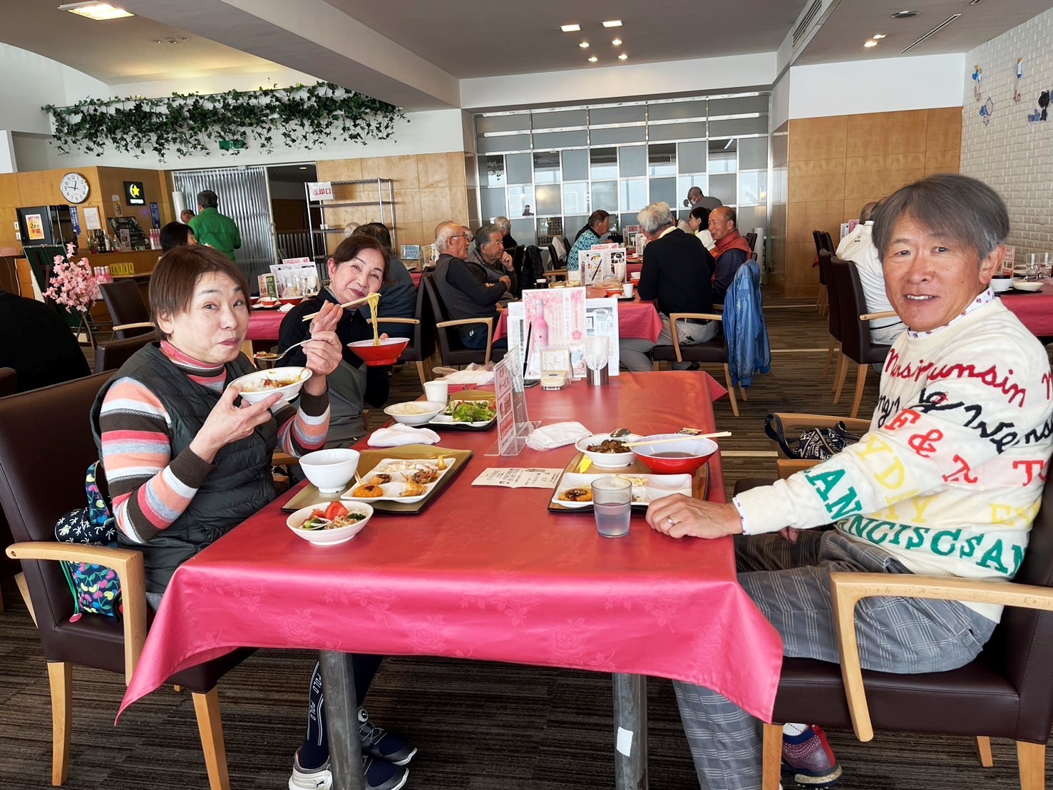 昼食は、東風の台運動公園に隣接している「きつねうち温泉」内の食堂で。