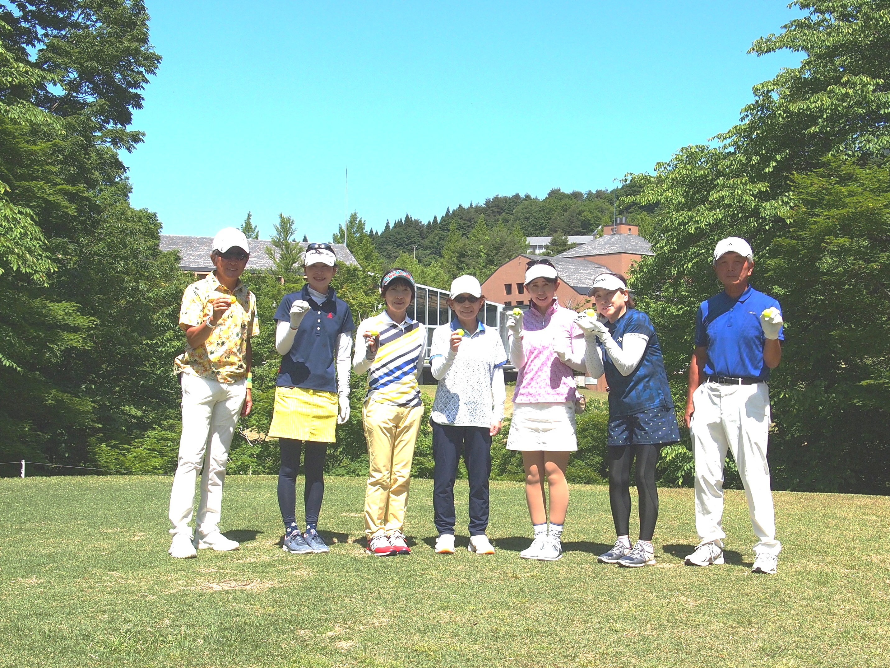 女性6名+男性3名で3組に分かれてのプレーとなりました。